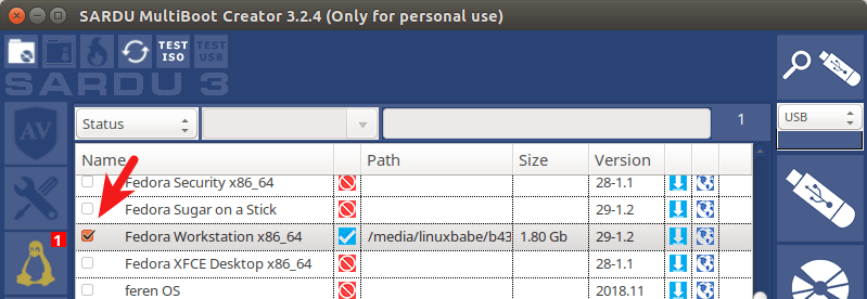 Then you can continue this process with another Linux distribution. After you select all your Linux distributions, insert your USB flash drive and click the USB icon on the upper-right corner to detect and select your USB flash drive.
