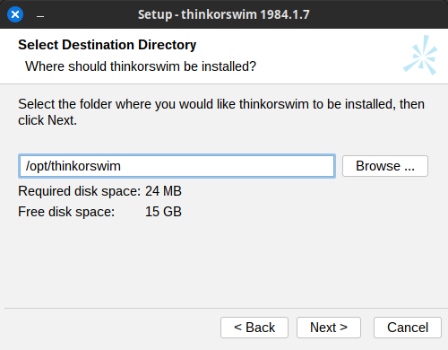 Next, select /opt/thinkorswim/ as the destination directory.