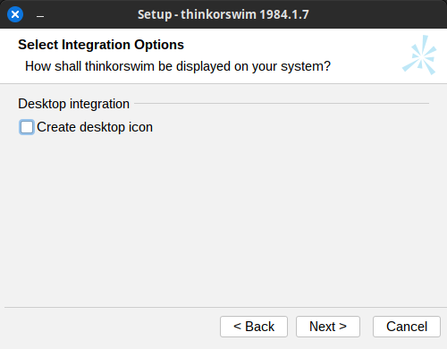Thinkorswim will be installed to your home directory, which is great.
