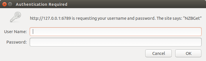When you first visit the web interface, you need to enter the username and password, which can be found in the NZBGet configuration file (/etc/nzbget.conf). The default username is nzbget and the default password is tegbzn6789.