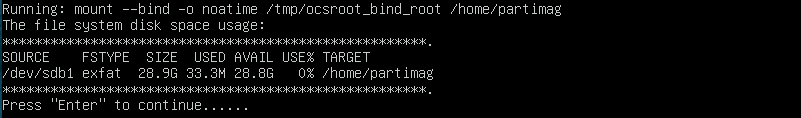 Now Clonezilla kindly gives you the equivalent command-line, so you can enter this one-liner next time you make a backup without going through all the questions again. Press Enter to continue.