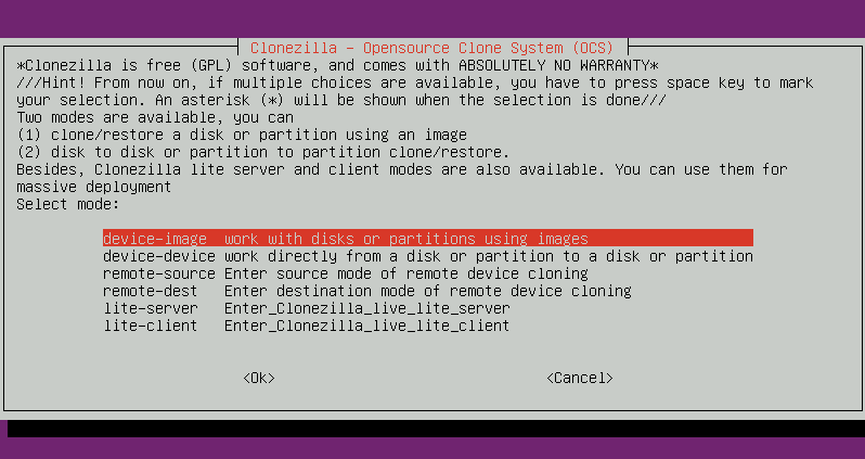 Next, choose between beginner and expert mode. If you are a Clonezilla beginner, then choose the beginner mode.