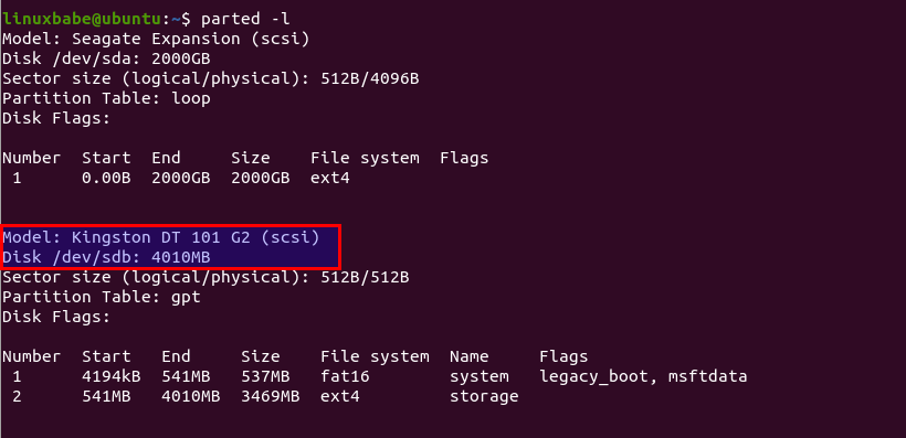 sudo parted -l