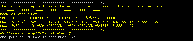 Press y to start saving your disk to an image.