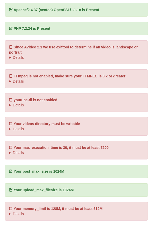 The left-hand side will show you if your server meet the requirements of AVideo Encoder.