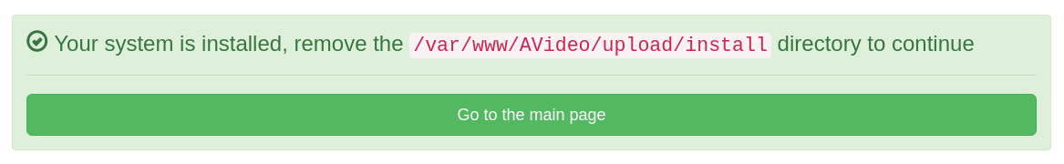 Now we need to remove the /var/www/AVideo/install/ directory.