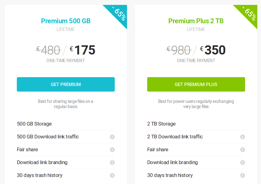 pCloud is the first to offer a lifetime plan in the cloud storage industry. The 2TB lifetime plan costs 350 Euros or 350 USD, depending on where you are located. If you compare it with the $9.99/month price of Dropbox, it’s a pretty good deal if you are a long time subscriber.