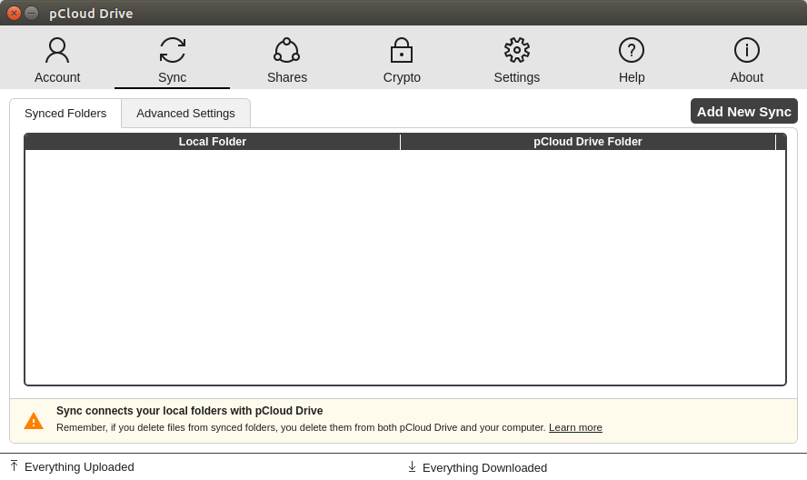 After login, a folder named pCloudDrive will appear under your home folder. All files under this folder will be synced with pCloud Drive. Note that this folder doesn’t take any physical space on your hard drive. You can view it as a remote file system which is mounted under your home folder.