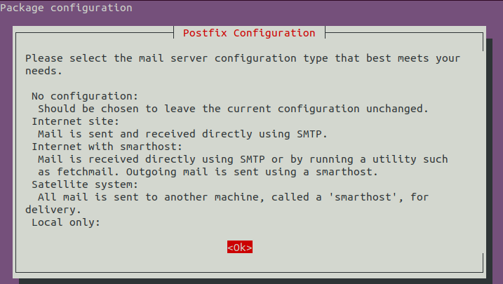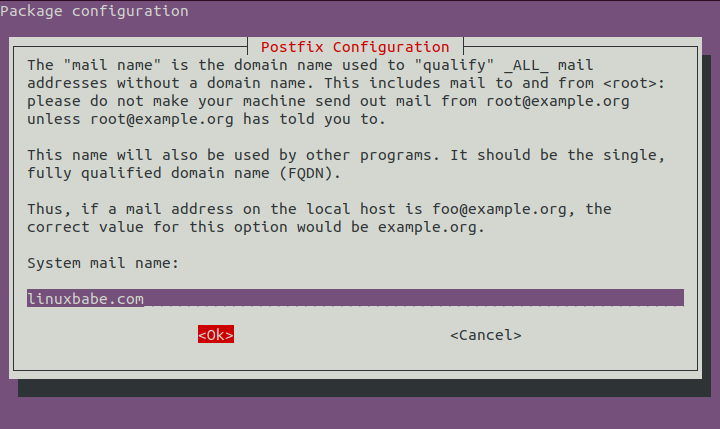 Next, set the system mail name. For example, I enter my domain name linuxbabe.com.