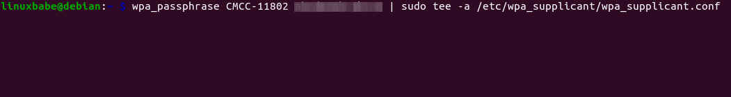 wpa_passphrase your-ESSID your-wifi-passphrase | sudo tee -a /etc/wpa_supplicant/wpa_supplicant.conf