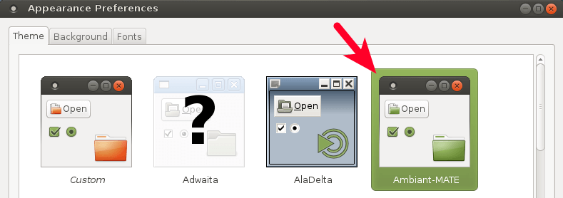 Now go to System > Preferences > Appearance. Under theme tab, choose ambiant-MATE as the theme.