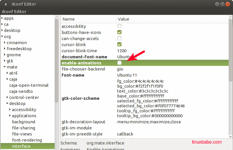 Go to org > mate > desktop > interface. Uncheck enable animations.