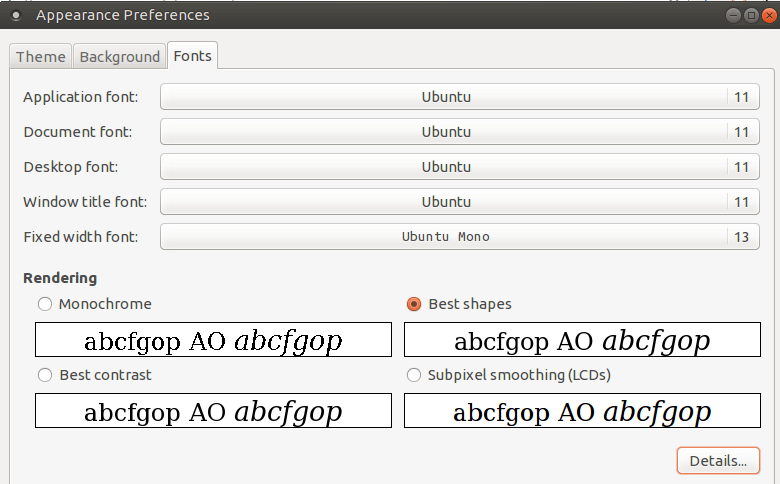 Then go to System > Preferences > Appearance. In the Fonts tab, make changes as shown in the screenshot below.