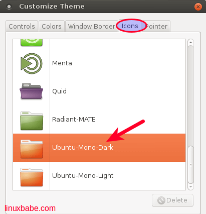 Then in the Icons tab, Change Icon theme to Ubuntu Mono Dark.