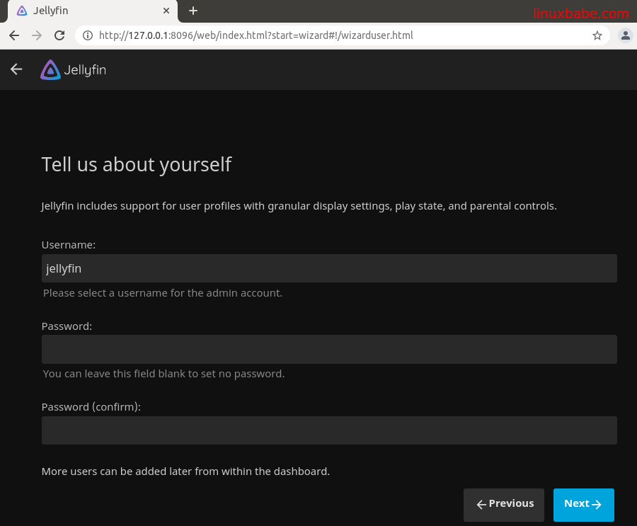 Click Next and Finish button. Finally, log into your Jellyfin account.