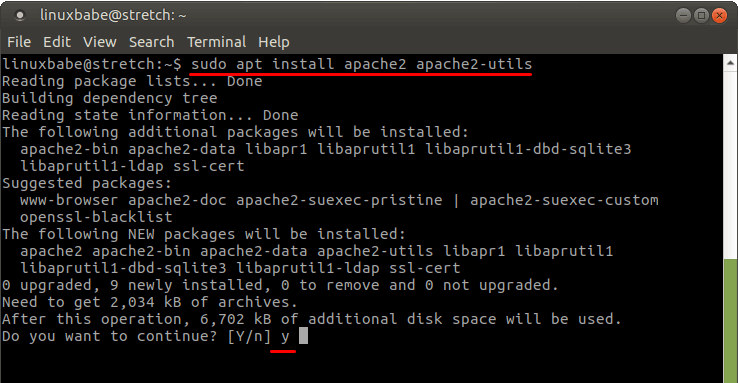 Enter the following command to install Apache Web server. The apache2-utils package will install some useful utilities like Apache HTTP server benchmarking tool (ab).