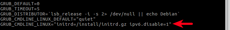 Disable IPv6 on Debian 8 Through Grub Bootloader