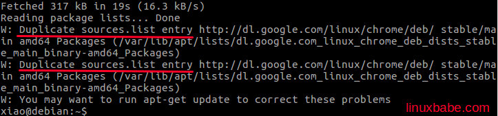 Today I got a duplicate sources.list entry warning when update local package index using apt-get update. As you can see from the screenshot below, I was notified that they are two entries for Google Chrome.