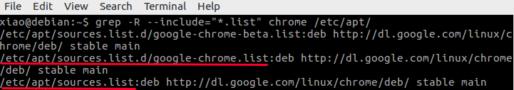 grep -R --include="*.list" chrome /etc/apt/