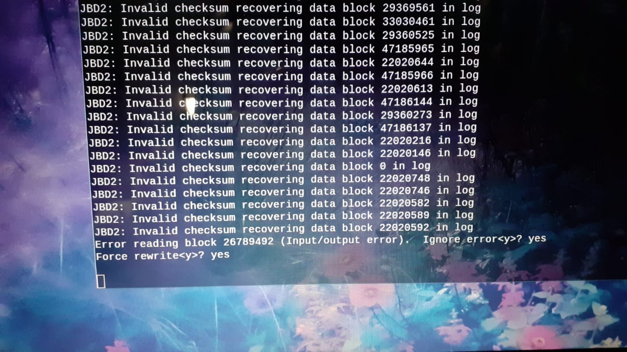 JBD2: Invalid checksum recovering data block 22020592 in log