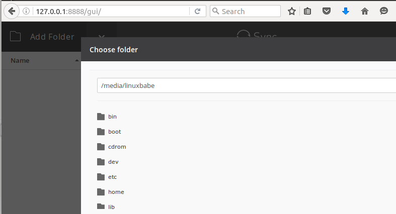 If it gives you a warning “Don’t have permissions to write to the selected folder.”, then here is a quick and dirty trick to grant write permission to the btsync user.