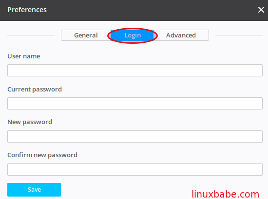 By default, the above configuration allows anyone to access the Web management interface. We can set up a username and password by clicking the gear icon on the upper right corner, then click Preferences.