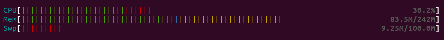 After rebooting, your system has less RAM for regular programs to run, as indicated by the htop command. For example, my Raspberry Pi 1 has 512MB physical RAM, now the system recognize only 242MB physical RAM. Kodi uses very little RAM, so you don’t need to worry about system running out of RAM. My Raspberry Pi 1 uses about 120MB RAM when Kodi is playing videos.