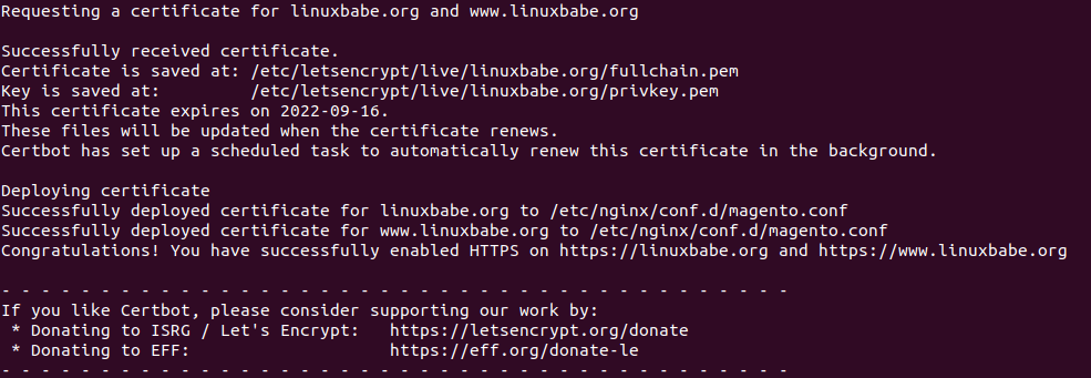 certbot certonly –webroot -d example.com -d www.example.com –email [email protected] -w /var/www/_letsencrypt -n –agree-tos –force-renewal