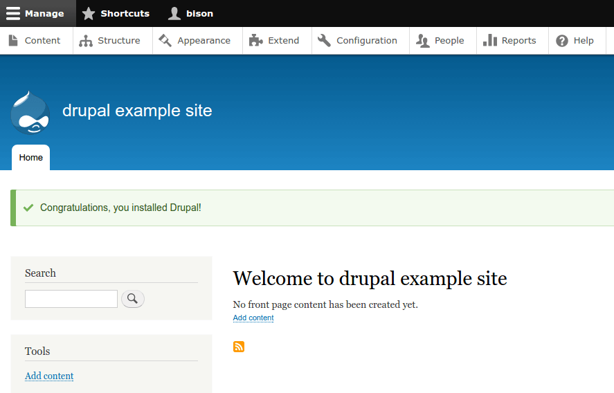 Remember that all of the above settings can be changed later on. Finally, click Save and continue. You will be taken to the home page of your Drupal site.