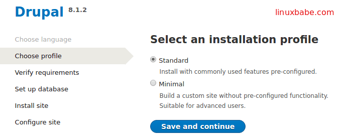 Step 2 is to choose an installation profile. If you are installing plain Drupal core, ie, not Drupal distributions, then you options will be standard and minimal. You want to choose standard if you are a Drupal beginner. You only want to choose minimal if you really are an advanced Drupal user who like to heavily customize the site that is going to be built.