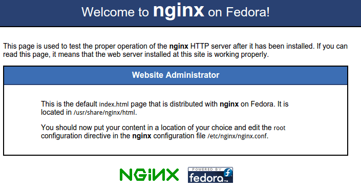 “Something has triggered an error on your website. This is the default error page for nginx that is distributed with Fedora. It is located /usr/share/nginx/html/50x.html