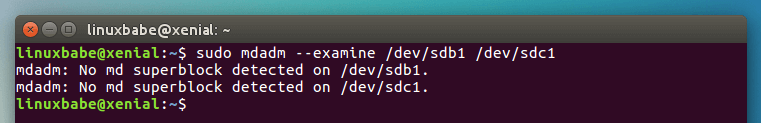 sudo mdadm --examine /dev/sdb /dev/sdc