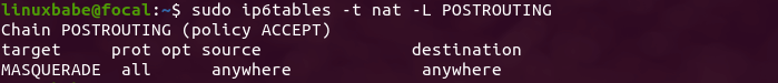 sudo ip6tables -t nat -L POSTROUTING