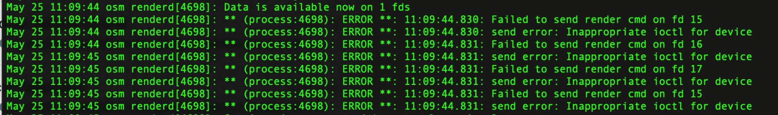 Jan 22 05:05:35 mapserver renderd[33986]: ** (process:33986): ERROR **: 05:05:35.774: Failed repeatedly to write stats, giving up