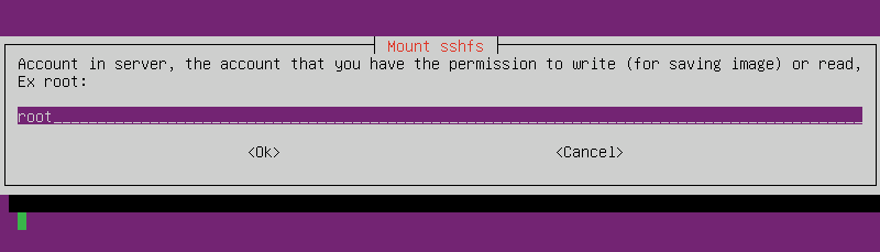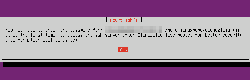 Next, enter the IP address or hostname of the SSH server where you want the disk image to be stored.