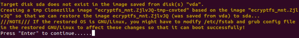 When restoring the image to disk, Clonezilla will convert the device name of the disk partitions if they are different (for example, vda to sda).