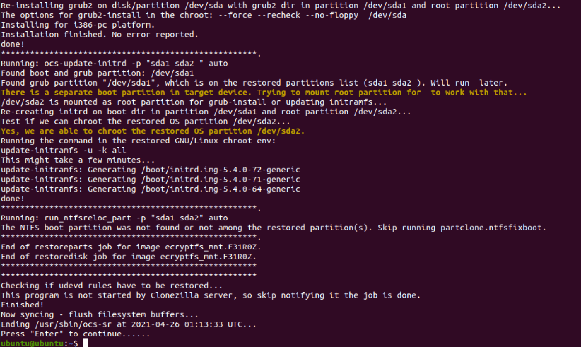 Once Clonezilla finishes its job, you can reboot your VPS. If the process failed, you can check the /var/log/partclone.log file.