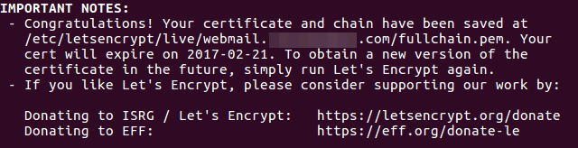 sudo certbot --nginx --agree-tos --redirect --hsts --email your-email-address -d webmail.example.com
