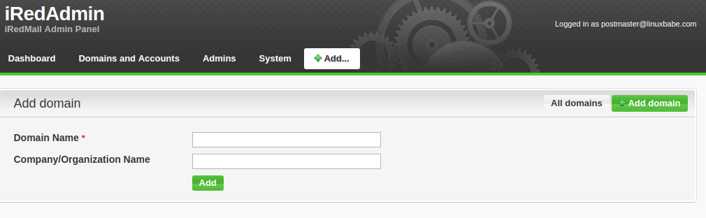 Although the postmaster account is the global admin of the email server, iRedAdmin told me that no domain is under control. The domain name can’t be deleted from iRedAdmin panel. You need to delete the domain name from MySQL/MariaDB database and add it back in iRedAdmin panel. The following steps are for MariaDB users on Ubuntu.