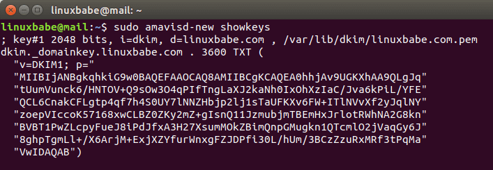 sudo amavisd-new showkeys