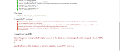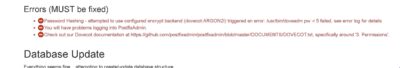 Screenshots of the errors. I have ran the php -r ‘echo password_hash(“password”, PASSWORD_DEFAULT);’ command and copied the password to the config.local.php file. Can’t figure out what I’m doing wrong.