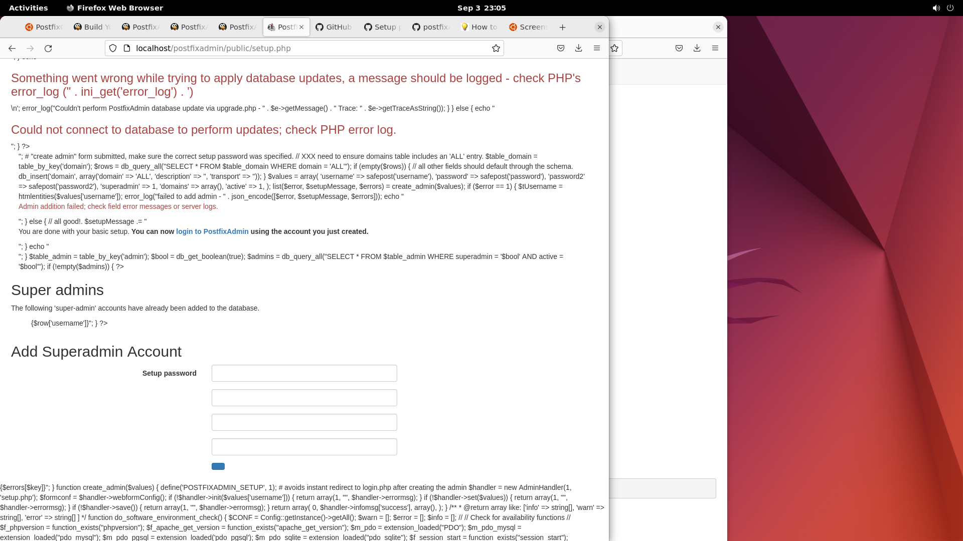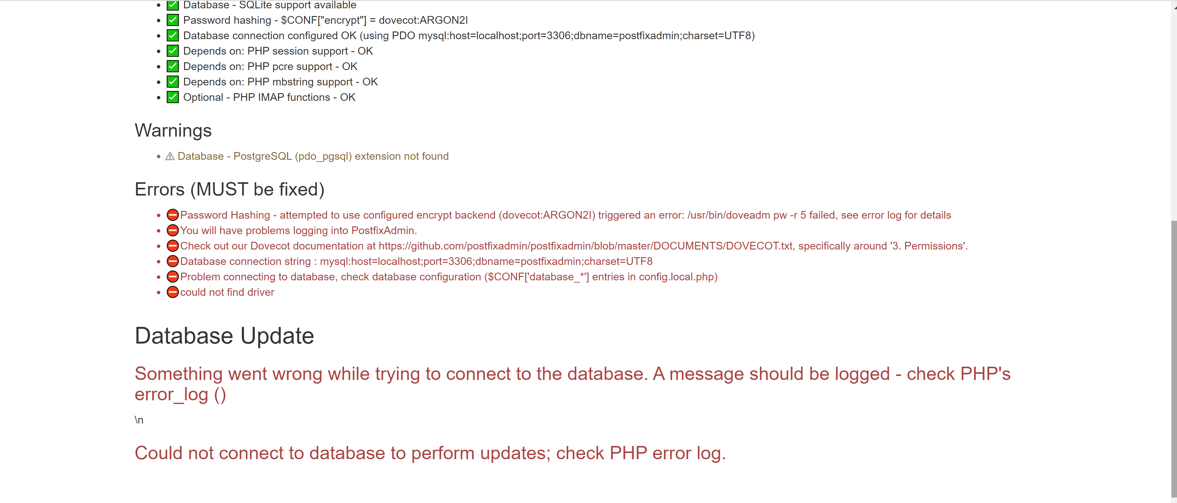 ssl=requiredin the/etc/dovecot/conf.d/10-ssl.conffile.Hi, great tutorial but I’m stuck with the setup.php of postfixadmin…
