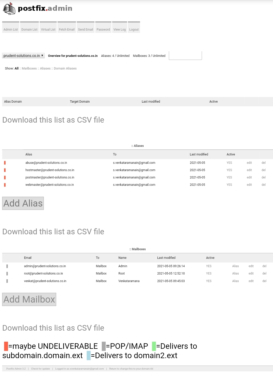 - Once you finish part 3, you can no longer use local Unix accounts as email addresses. You must create email addresses from the PostfixAdmin web interface.