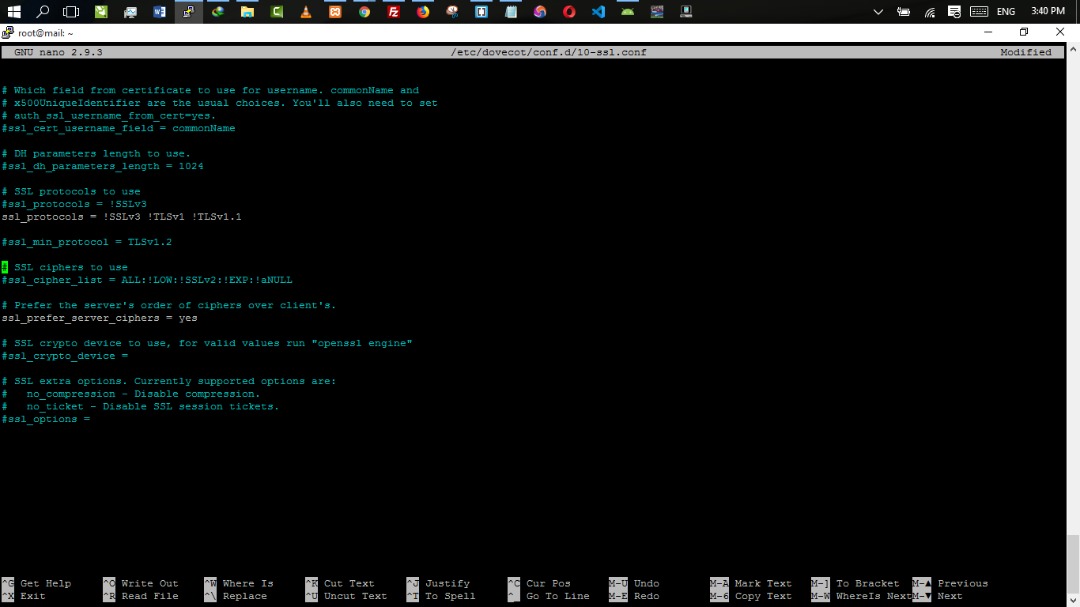 Next, we need to specify the location of TLS certificate and private key in Postfix configuration file. Edit main.cf file.