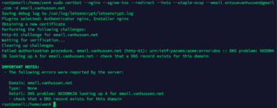 Failed authorization procedure. mail.ferniproyect.es (http-01): urn:ietf:params:acme:error:dns :: DNS problem: NXDOMAIN looking up A for mail.ferniproyect.es – check that a DNS record exists for this domain