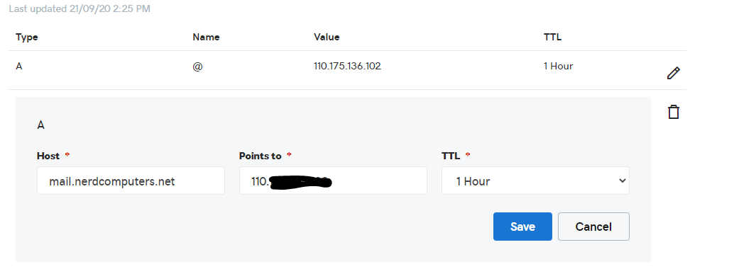 Thanks for your quick response, I still get the error, I have my DNS server with bind9 from another machine and I have added to the file db.ferniproyect.es the record A mail.ferniproyect.es, even so I still get the same error as before ….