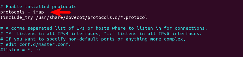 However, nowadays it’s almost always you want to use the Maildir format to store email messages. The config file for mailbox location is /etc/dovecot/conf.d/10-mail.conf.