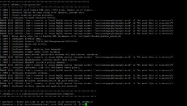 LEMP stack – on VPS server before iredMail. I have two sites installed on server (LEMP stack). Both sites were running ok. Now Installing iredMail came up to following output on terminal and stopped for a while :