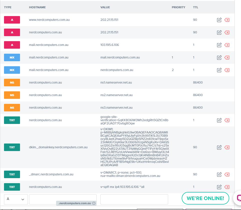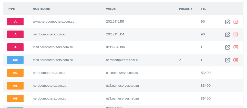 • I need it to go to 103.195.6.106 as that’s where the mail server is. a website at nerdcomputers.com.au will follow from a different server with a different IP. I just removed the MX mail.nerdcomputers.com.au to mail.nerdcomputers.com.au and only have it now pointing at the A record for mail.nerdcomp…