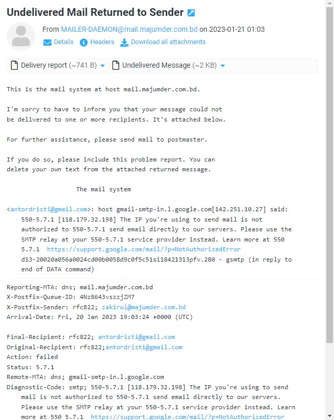 Hey Xiao, I am trying to connect the SMTP in mailwizz EMS, using mail.income4youonline.com as hostname, the username, and the password of one of the users we created in iredmail panel, port 587 and tried all the protocols (tls,ssl,starttls). The mailwizz is unable to connect with the smtp server. Please can you advise me, on how to escalate it?